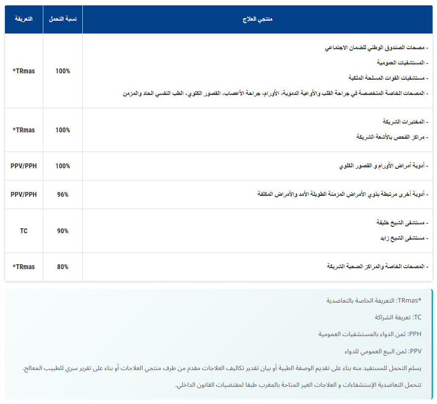 تتحمل تعاضدية العمل الاجتماعي من خلال نظام تغطيتها الصحية، الخدمات المنجزة من طرف منتجي العلاج،وفق الجدول المرفق: