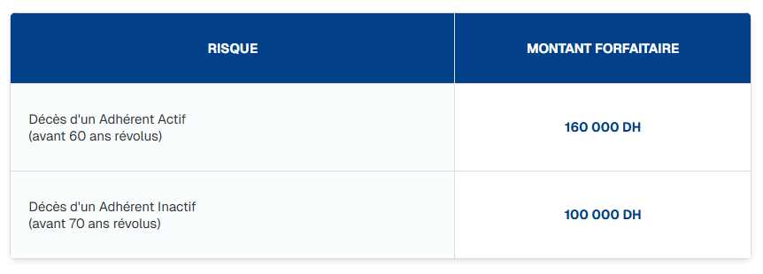 Les adhérents ont droit à la couverture des risques couverts, invalidité et décès, à travers :